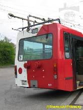 Si vous voulez vous distraire, installez-vous dans la véranda du buffet de la gare. Vous verrez de tout : des perches qui montent à côté du chapeau de ligne, ou juste après, des perches qui restent miraculeusement collées sur le toit avant d’être littéralement catapultées contre le chapeau de ligne dans un bruit semblable à une collision de véhicule (et l’enrouleur qui n’a pas bronché), des perches qui se croisent en descendant, des têtes de perches en travers qui ne glissent pas dans le chapeau et le chauffeur repartant en diesel sans les redescendre (vous connaissez la suite…). Sans compter ceux qui oublient simplement de les descendre en direction de la rue St-Pierre, là le résultat est est moins discret, comme en témoigne l’image ci-contre.