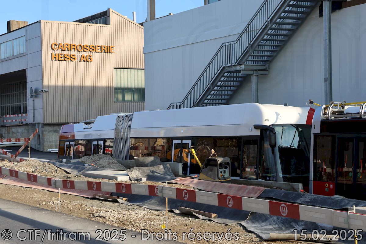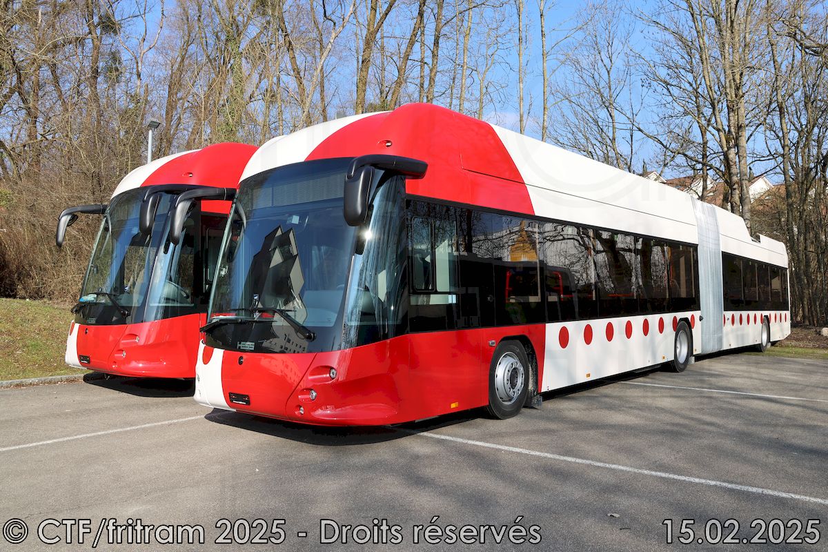 Les cinq futurs trolleybus à batteries HESS pour les TPF no 6612 à 6616 sont en cours de fabrication chez le constructeur HESS à Bellach/SO. Les 2 premiers TBB 6612 et 6613 sont prêts à être livrés. Ils complètent la série 6601-6611.