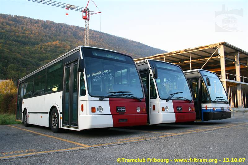 Le 44 est toujours hors service à Givisiez, tandis que le pab 43 a été réparé et a retrouvé sa ligne de Villars-sur-Glâne. Le VanHool no 118 est toujours à Givisiez.
