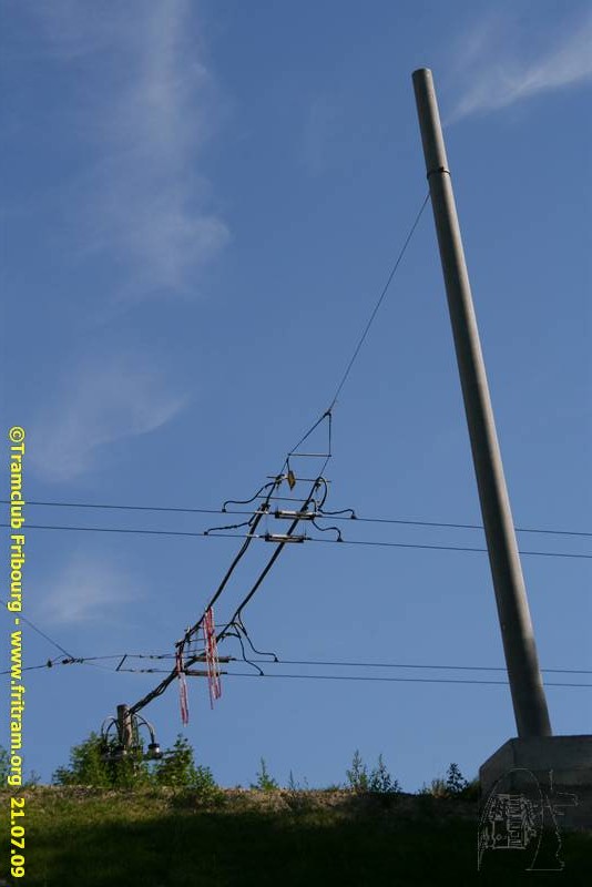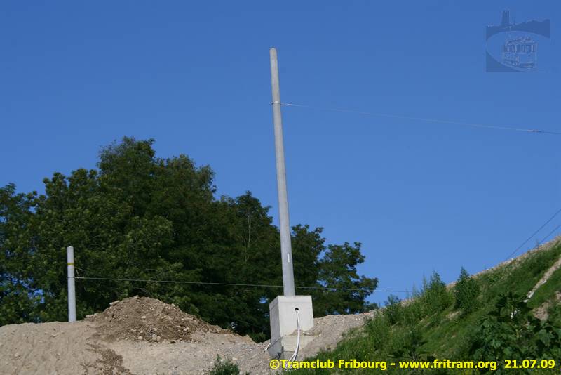 Dans le cadre du chantier du pont de la Poya, au Stadtberg, les anciens mâts verts qui supportent la ligne de contact ont été remplacés ces jours par de nouveaux poteaux en béton.