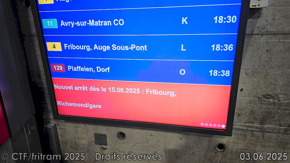 Dès le 15 juin 2025, le nouvel arrêt Fribourg/Freiburg, Richemond/gare est mis en service dans les deux sens. Il est exploité par les bus des lignes urbaines 2 - 6 et 11 et par les bus de nuit 361 et N12 sens montant et les lignes 2 et 6 sens descendant.
