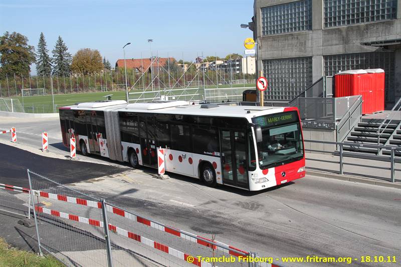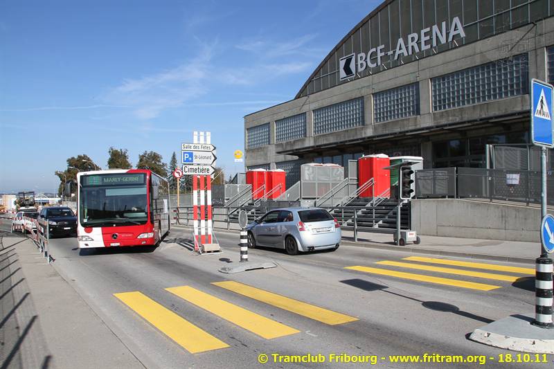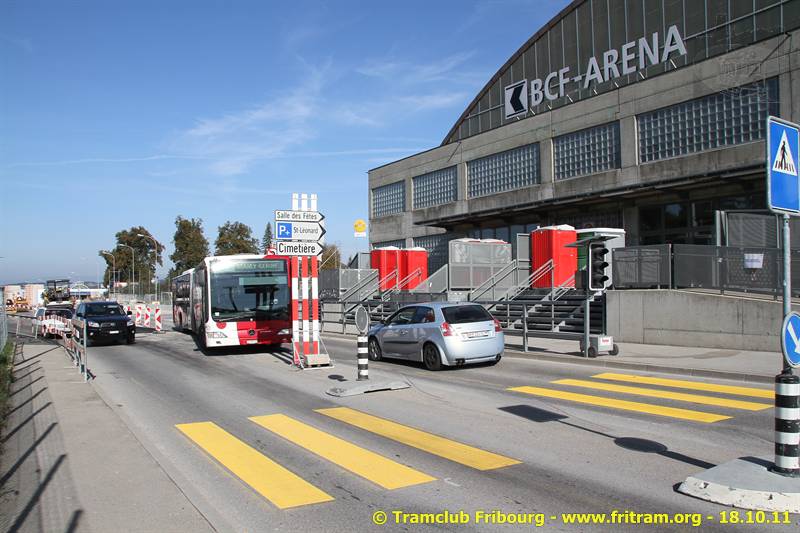 La sortie de l’allée du Cimetière se faisait sur la voie en sens inverse. Pour ce faire, le chauffeur commande le feu pour arrêter les voitures pour passer. Mais c’est très étroit !