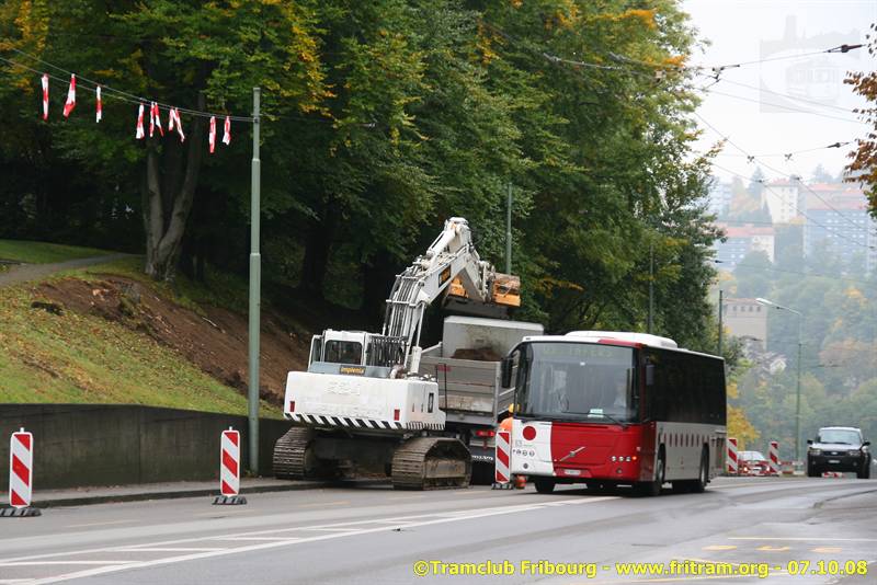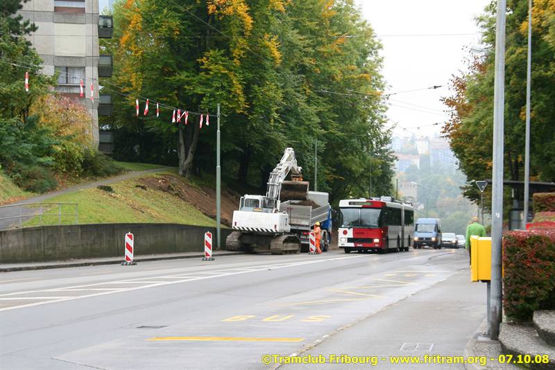 Depuis de nombreuses années, on parle du fameux pont de la Poya à Fribourg... et bien, les travaux commencent enfin... avec le démontage de la ligne électrique entre Stadtberg et St-Barthélémy ! Les bimodes déperchent juste avant l’arrêt Stadtberg qui a été déplacé de quelques mètres en amont et emperchent juste avant le giratoire de St-Barthélémy. Les travaux devraient durer une année avec le démontage dans le sens descendant aussi.